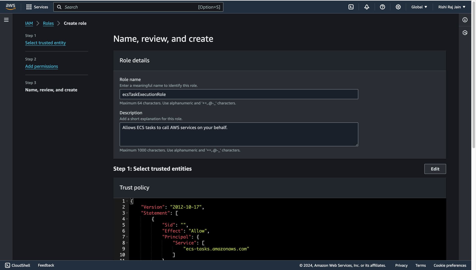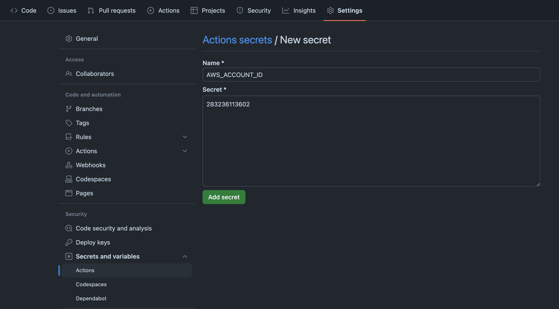 - Enter AWS_ACCOUNT_ID as the value obtained earlier.