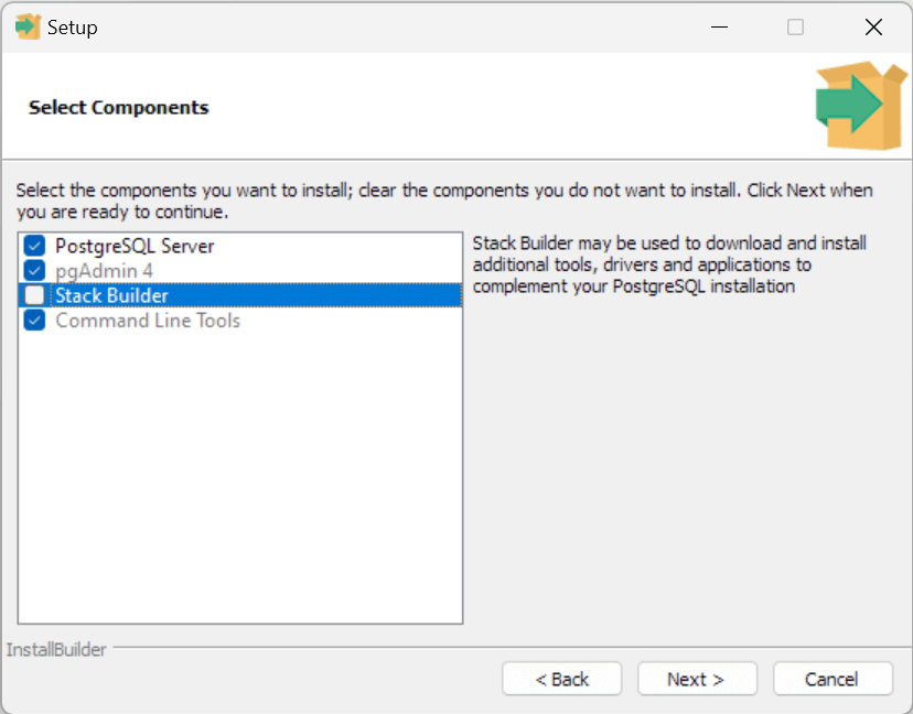 - pgAdmin 4 option allows you to install the PostgreSQL database GUI management tool.